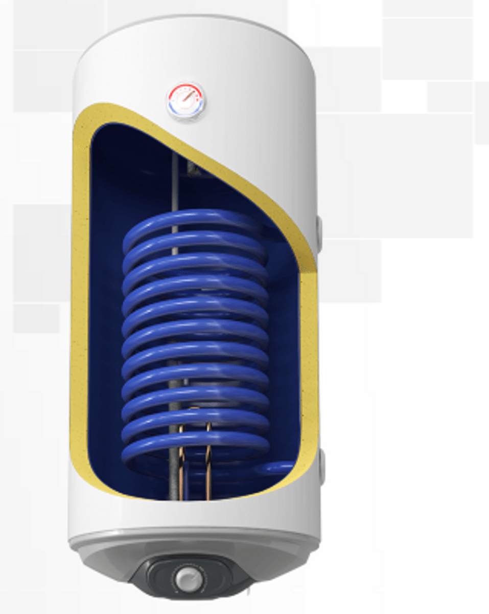 Комбиниран бойлер с една лява/дясна серпентина. С емайлирано покритие и 3 KW нагревател.